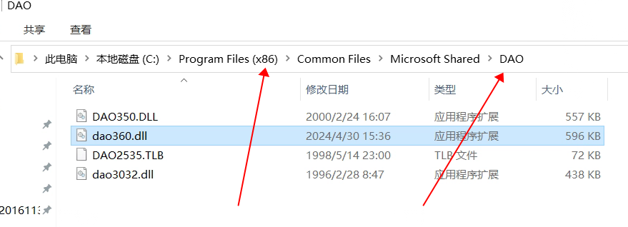 注意:如果電腦中沒這個文件,就需要到一臺好的電腦去復制到2個DAO文件夾中